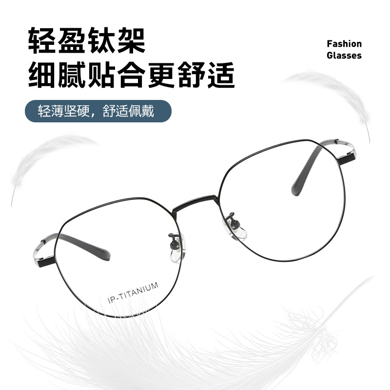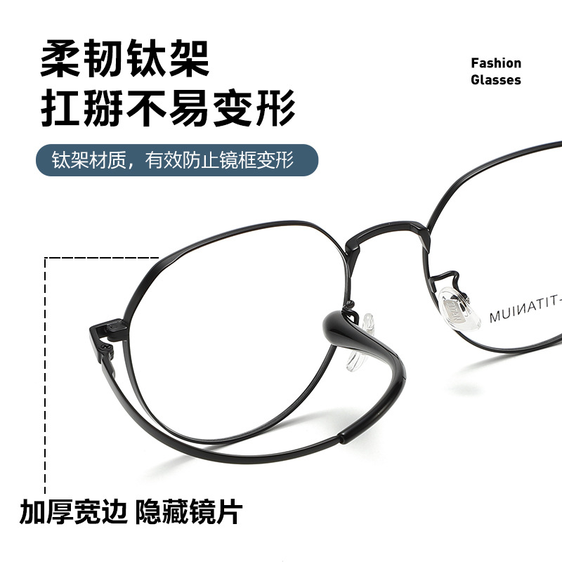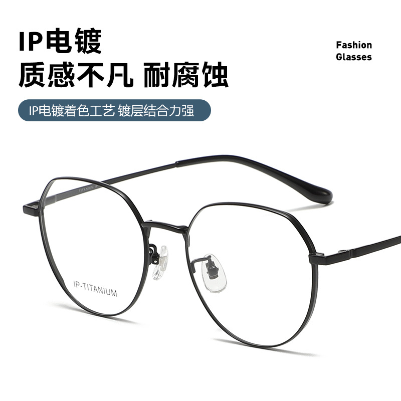 艾帕诺超轻纯钛眼镜架多边形大框52深圳IP电镀时尚男女可配镜批发