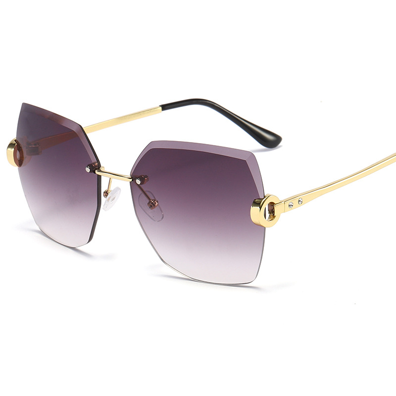新款时尚切边无框太阳镜女士镶钻网红墨镜抖音跨境潮流街拍眼镜