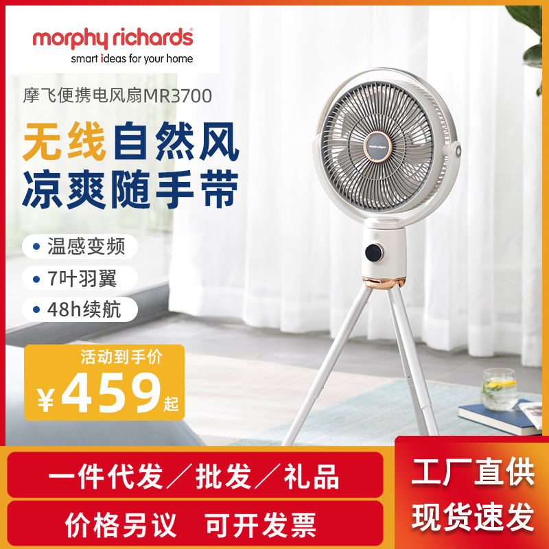 摩飞电风扇 家用落地扇无线便携式12挡充电户外节能扇遥控循环扇