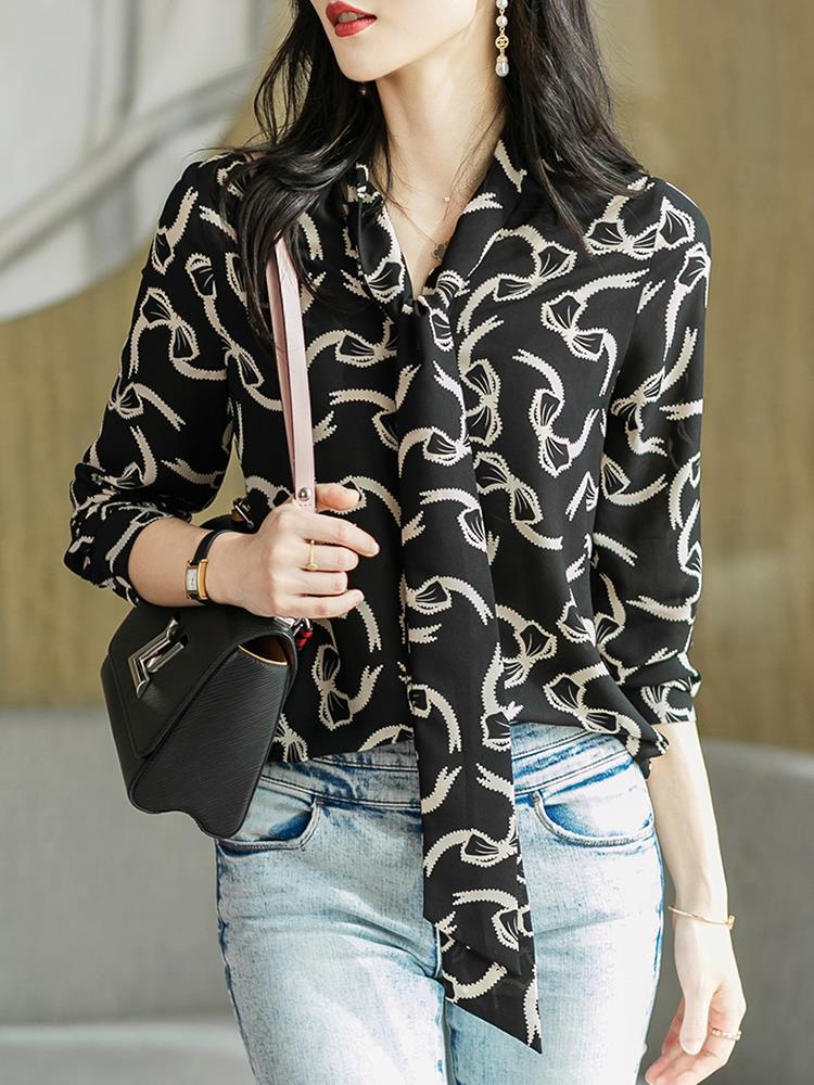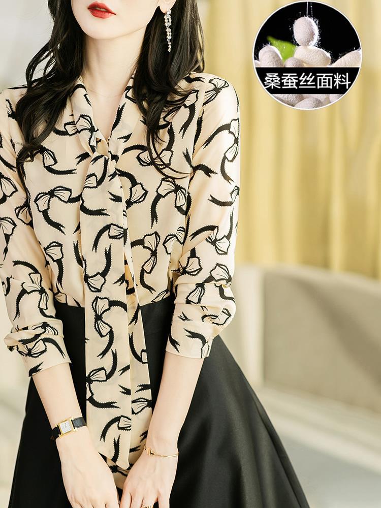 正宗真丝衬衫女士气质高端衬衣秋装2022年新款大牌长袖桑蚕丝上衣
